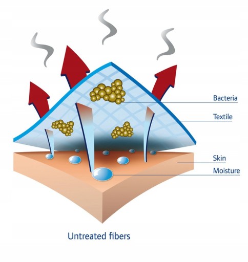 - posiada właściwości bakteriostatyczne ,które uniemożliwiają przemieszczanie się bakterii z materiału na skórę
