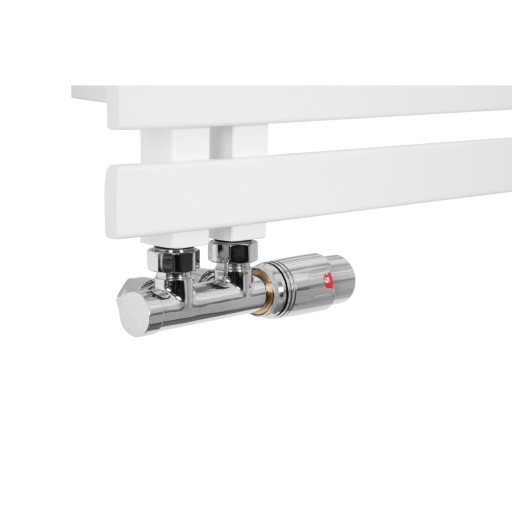 Nowoczesny grzejnik łazienkowy o zbudowany z prostokątnych listew. Asymetryczne usytuowanie pionowych kolektorów grzejnika nadaje mu dekoracyjnego charakteru, a jednocześnie pozwala na łatwiejsze przewieszanie ręczników. Grzejnik o wymiarach 69x50cm o mocy 274W w kolorze białym idealny do małej łazienki.