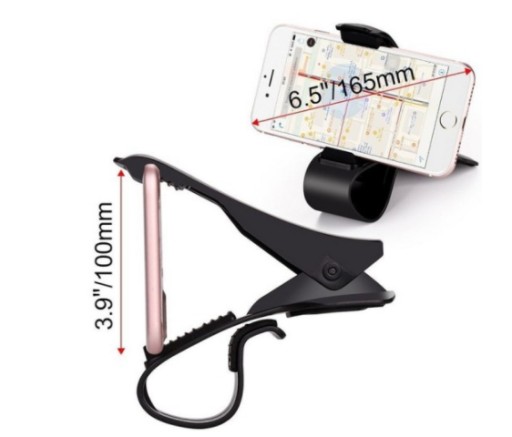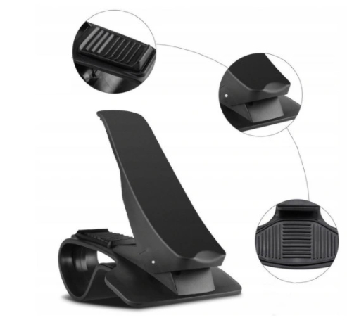 Uchwyt samochodowy z klipsem przeznaczony do montażu na deskę rozdzielczą.