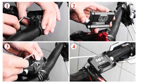 Uchwyt można zamocować do hulajnogi lub roweru na kierownicy w tradycyjny sposób lub bezpośrednio w sztycy.