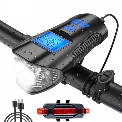 Zestaw świateł rowerowych z licznikiem kilometrów