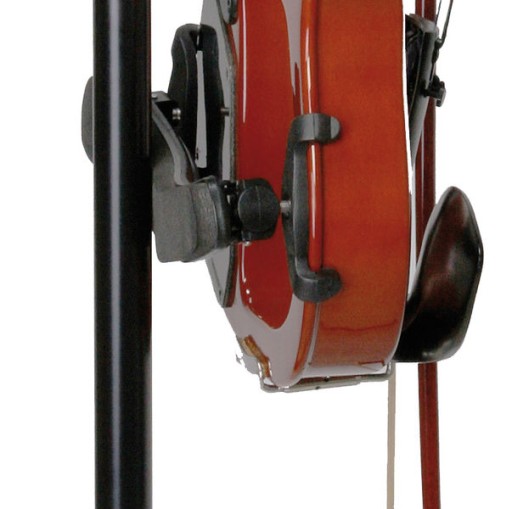 K&M 15580 to wyściełany miękkim materiałem wieszak dedykowany specjalnie do skrzypiec. Specjalna konstrukcja zacisku pozwala na montaż na dowolnej rurce o średnicy do 30 mm, czyli do większości pulpitów i statywów. W wieszaku jest także praktyczny zaczep na smyczek. Wieszak zaprojektowany jet tak, że praktycznie niemożliwe jest niezamierzone zsunięcie się z niego skrzypiec.