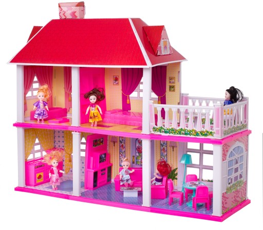 Kolorowa willa dla lalek o bogato wyposażonym wnętrzu. Posiada 5 umeblowanych pomieszczeń. W domku mieszczą się lalki o wysokości do 16 cm i z pewnością będą chciały tam zamieszkać.