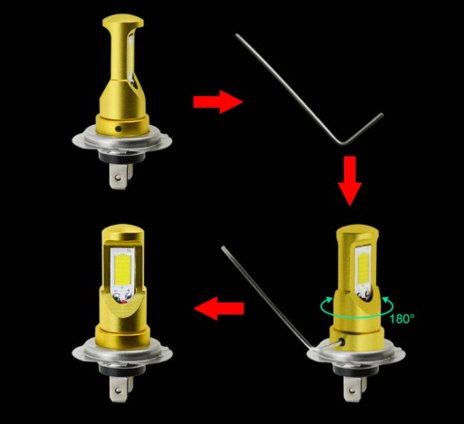 Krok 4: Podłączamy żarówkę do kostki H7. Żarówkę można obracać o 360°, by znaleźć odpowiedni kąt świecenia na obszar przed samochodem.