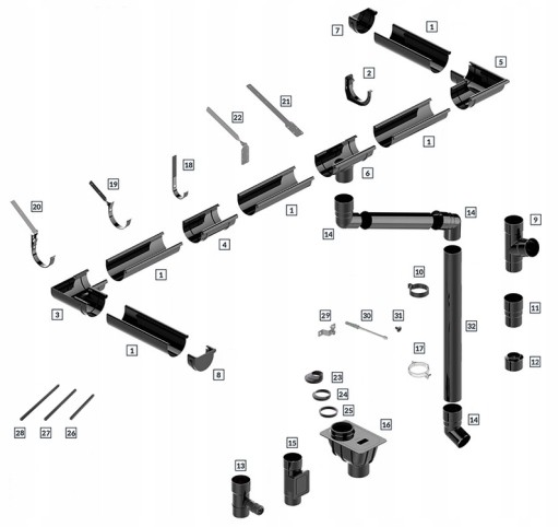 - Przeznaczenie: Odprowadzanie wody deszczowej do zbiornika