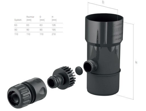 ДОЖДЕВОЙ УЛОВИТЕЛЬ 63 мм Коллектор дождевой воды Желоба Grafi X5
