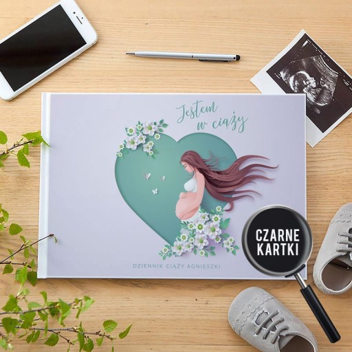 Przepiękny dziennik ciąży z wizerunkiem Przyszłej Mamy w sercu to wyjątkowy wybór na okres ciąży. Dziennik pozwoli zebrać w jednym miejscu zdjęcia z USG, spisać terminy wizyt lekarskich czy osobiste przeżycia z tego cudownego okresu. Świetny również na prezent na Baby Shower.