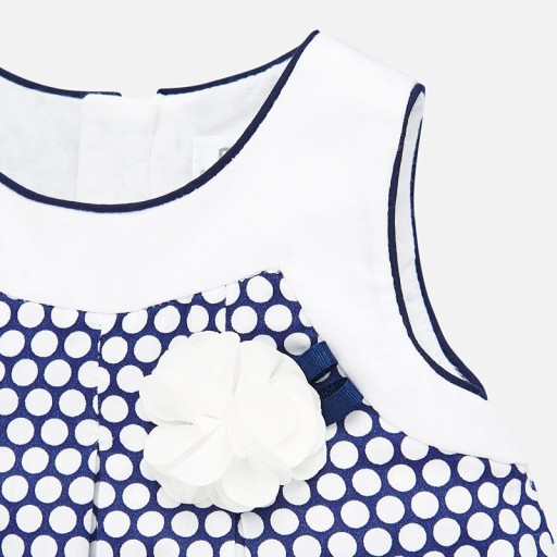 Komplet dla dziewczynki Newborn składający się z dwóch ubranek, sukienki i pasujących majteczek. Sukienka na szerokich ramiączkach. Zapięcie na plecach z ukrytym suwakiem. Ubranko wykonane ze 100% bawełny. Ozdoby: ozdobne aplikacje. Projekt z nadrukiem