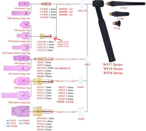 Soczewka gazowa pasuje do uchwytów spawalniczych TIG między innymi takich Firm jak:
