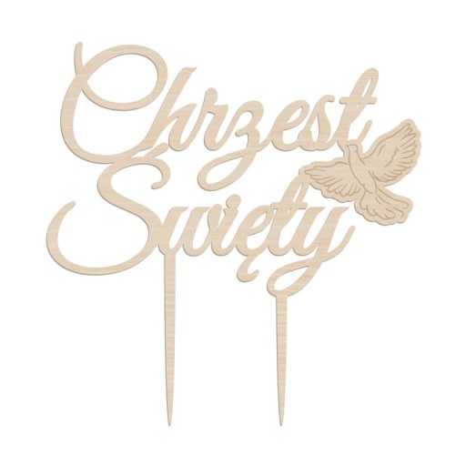 Śliczny topper przedstawiający drewniany napis "Chrzest Święty" to wspaniała ozdoba ciasta przygotowanego na uroczystość Chrztu dziecka. Topper posiada motyw gołąbka, który idealnie wpisuje się w klimat i charakter tej wyjątkowej uroczystości.
