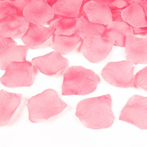- materiałowe płatki róż w jasnorózowym kolorze, delikatne i łudząco podobne do prawdziwych