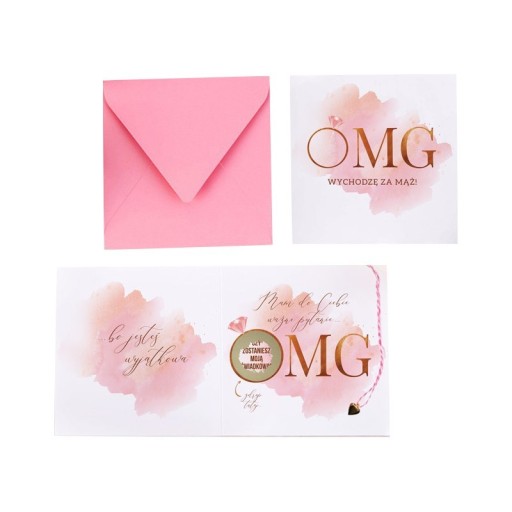 - w komplecie znajduje się kartka z prośbą, jasnoróżowa koperta oraz małe serduszko na biało-różowym sznureczku, które pozwoli zdrapać zdrapkę