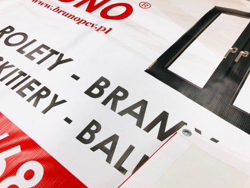 - wytrzymały materiał banerowy 510 g/m2 o splocie 1000x1000, korzyści: