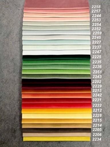 Pełna kolorystyka dostępna na próbnikach tkanin poniżej lub wysyłamy indywidualnie na meila.