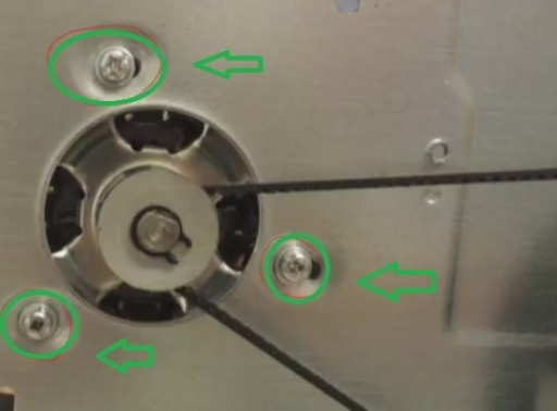 powykręcaj zaznaczone śrubki i wyciągnij cały mechanizm luzując przy tym główny kabel zasilający