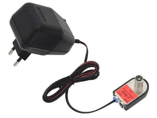 Antena aktywna więc zasilana z dekodera DVB-T 5V lub z zasilacz 12V który jest załączony w komplecie