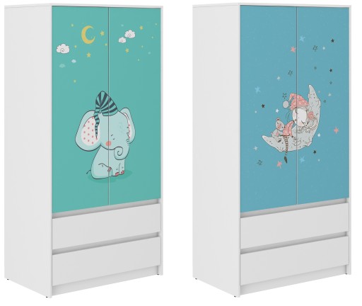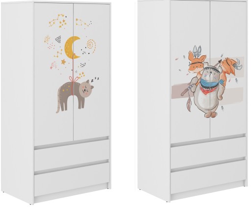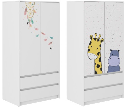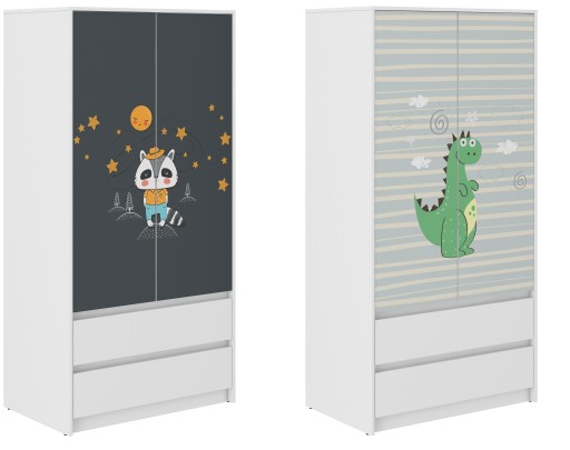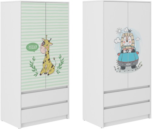 Nowoczesna szafa B-9 to praktyczny i funkcjonalny mebel, który znajdzie swoje zastosowanie w każdym pokoju dziecięcym. Ergonomiczne wymiary zapewniają swobodne umeblowanie pomieszczenia. Szafa wykonana jest z płyty wiórowej kolor biały, wykończony okleiną. Drzwi posiadają kolorowy nadruk. Nadruk posiada ładne żywe kolory, które są zabezpieczone specjalnym laminatem aby nie uległy wyblaknięciu lub ścieraniu. Można bez obaw myć go ściereczką i płynem.