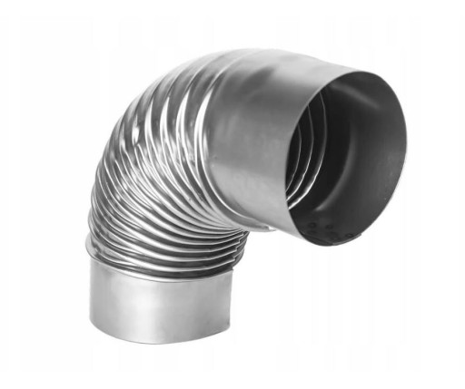 Produkt wykonany z grubej blachy stalowej. Kolano stosowane do połączeń piecowych w celu odprowadzenia spalin, dymu z pieców typu "koza", trociniak.