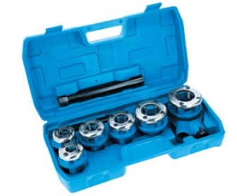 Zestaw zawiera 6 narzynek o rozmiarach: 1/4”, 3/8”, 1/2”, 3/4”, 1”, 1¼”; grzechotka; przedłużka uchwytu.
