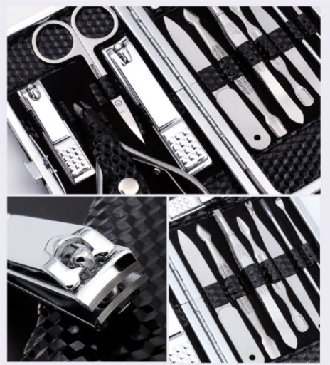 Zestaw składa się z 18 elementów, eleganckie i trwałe wykonanie każdego z narzędzi, wraz z etui pozwoli na długi czas użytkowania. Każda kobieta potrzebuje praktycznych narzędzi, by mieć je zawsze pod ręką. Wewnątrz etui każde z narzędzi posiada wyodrębnione miejsce, co pozwala zachować ład i porządek, bez ryzyka zgubienia. Etui zamykane jest na zatrzask, a na zewnątrz posiada ciekawą, czarną strukturę, która spodoba się każdej kobiecie.