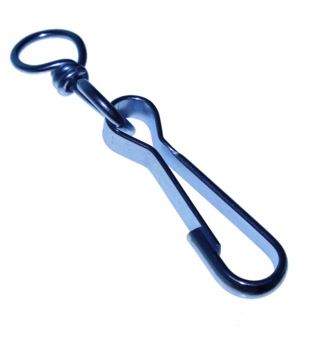 Zastosowanie:Spinacz z okrętką stosowany do zakończenia łańcucha,smyczy. Zapobiega skręcaniu się łańcucha.