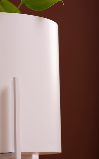 Do malowania używamy najwyższej jakości farby proszkowej: poliestru fasadowego odpornego na ścieranie oraz promienie UV. Biały kolor strukturalny pięknie komponuje się z soczystą zielenią ożywiając wnętrze lub taras w sposób wyjątkowy i niezapomniany. Struktura farby pomaga zachować stojak w idealnej czystości, ponieważ palce nie zostawiają na niej śladów.