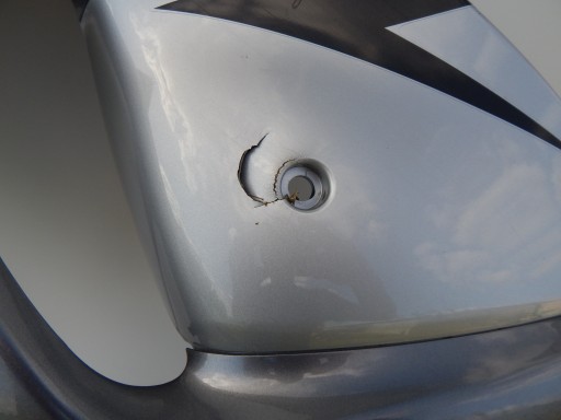 Posiada uszkodzone zaczepy, pęknięty przy mocowaniu.