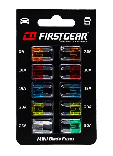 Wysokiej jakości zestaw bezpieczników samochodowych płytkowych typu MINI chroniący instalacje elektryczne pojazdów przed ich uszkodzeniem.