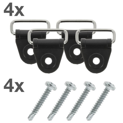 Jeśli auto nie posiada miejsc do zaczepienia haczyków to w zestawie są również uniwersalne oczka które można zamontować w bagażniku aby za nie móc zaczepiać siatkę.