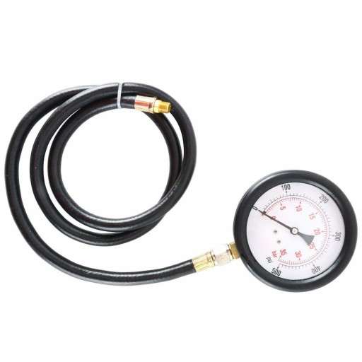 - Zawiera manometr 3" z dokładną podziałką 0–500 psi (0–35 bar) i wąż 600 mm z końcówką 1/8"