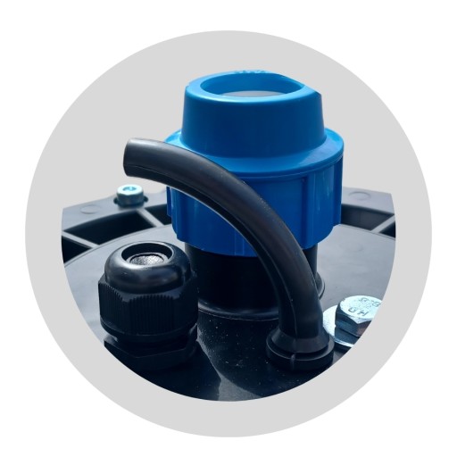 ✅ Przyłącze hydrauliczne: Umożliwia podłączenie rury tłoczącej wodę z pompy, eliminując potrzebę dodatkowych połączeń hydraulicznych.