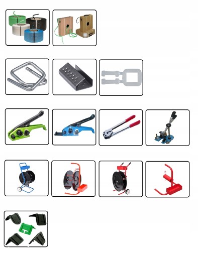 - zapinki: druciane, blaszane lub plastikowe (do łączenia taśmy)