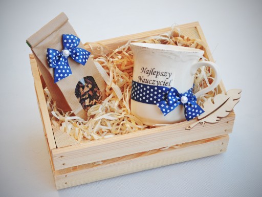 Elegancki, oryginalny i praktyczny prezent dla ulubionej nauczycielki, wychowawczyni. Ekskluzywny porcelanowy kubek i wyśmienita herbata - całość w drewnianej skrzynce.