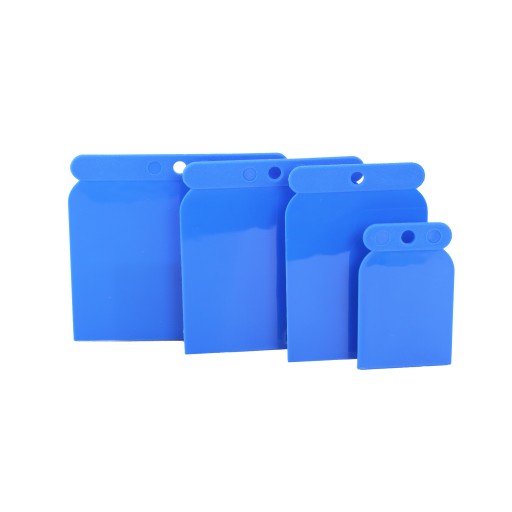 Komplet 4 sztuk szpachelek plastikowych w różnych rozmiarach do rozprowadzania szpachli samochodowych.