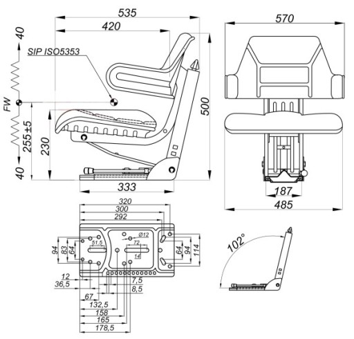 Siedzenie nadaje się do każdej maszyny z plaską podstawą pod siedzenie.