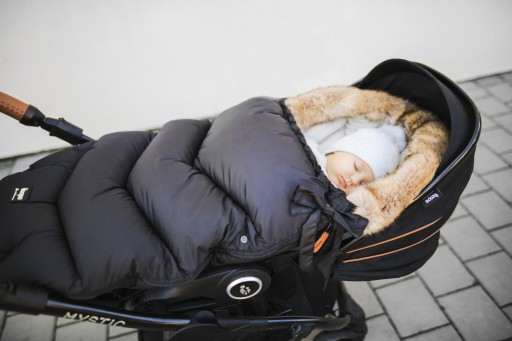 - Praktyczne przymocowanie na wierzchu śpiwora zapobiega zsuwaniu się w dół w wózku sportowym