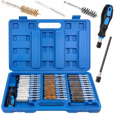 Zestaw szczotek do gniazd wtryskiwaczy, gniazd świec iskrowych i żarowych.