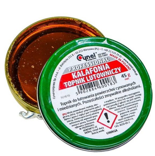 Podstawowy topnik używany w elektronice. Wyprodukowany z żywicy sosnowej. Używana często jako baza do topnika wzorcowego.