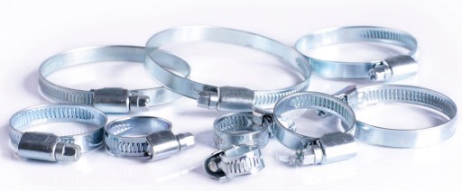 Ocynkowane opaski zaciskowe skręcane do różnego rodzaju węży, przewodów itp .