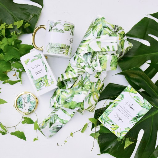 Piękny zestaw: kubek i kawa, a także lustereczko i szlafrok, to wszystko w drewnianej skrzynce z dedykacją. Personalizacja i piękny botaniczny motyw sprawi, że ten prezent będzie naprawdę wyjątkowy i oryginalny!