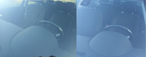 Efekty działania tlenku ceru - szyba przed i po polerowaniu