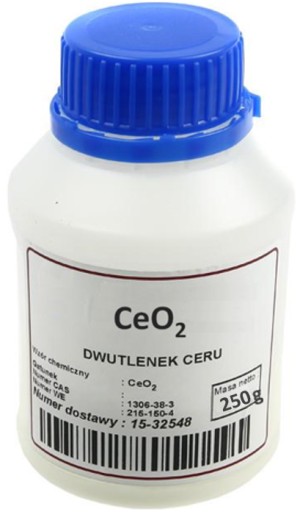 - 250 gram Tlenku (dwutlenku) Ceru 99,5% w praktycznym, zaplombowanym pojemniku.
