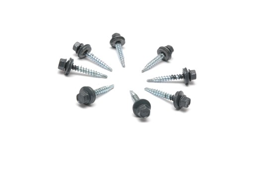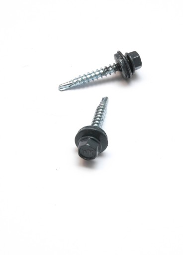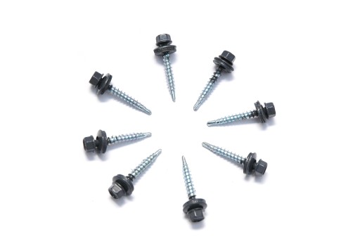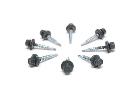 Wkręty samowiercące ze stali niskowęglowej z podkładką gumową typu EPDM przeznaczone do mocowania blach, blachodachówki, i obróbek blacharskich do podłoży drewnianych.