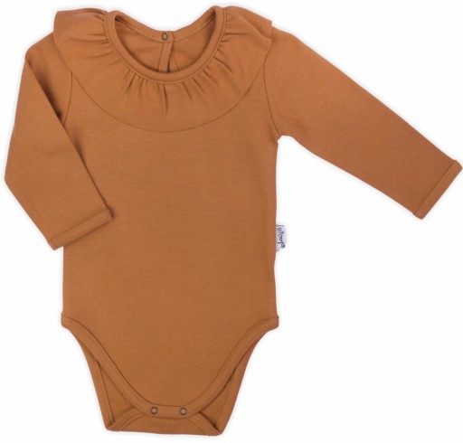 Bawełniane body rudo-brązowe z efektownym szerokim kołnierzem - falbaną wokół szyi.