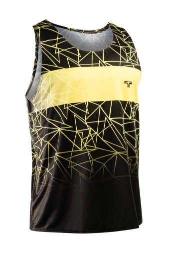 Bezrękawnik treningowo startowy wykonany z bardzo lekkiej, zaawansowanej technologicznie dzianiny o właściwościach termo-aktywnych. Materiał wykonany jest z wielowłókienkowej przędzy tworzącej mikro kanalikową strukturę dzianiny, która skutecznie odbiera i odprowadza wilgoć powstałą podczas wysiłku fizycznego, co ma znaczący wpływ na komfort użytkowania i podnosi wydolność organizmu podczas aktywności fizycznej. Specjalna technologia wykończenia materiału „TERVEL THERMAL REVELATION” gwarantuje jej miękkość i elastyczność oraz daje przyjemne wrażenie chłodu w kontakcie ze skórą. Nowoczesne wzornictwo wykonane w technologii pełnego nadruku sublimacyjnego nadaje koszulce modny i estetyczny wygląd mający wpływ na komfort noszenia.