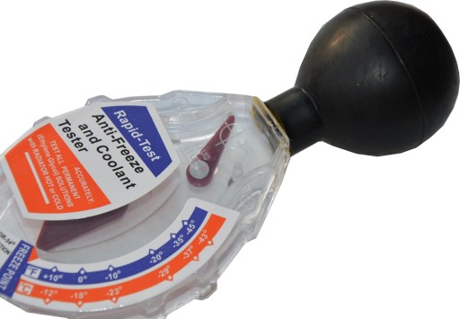 Tester pozwala na szybkie i dokładne sprawdzenie parametrów płynu chłodniczego. Skala na urządzeniu oznaczy temperaturę zamarzania a czerwona temperaturę wrzenia.