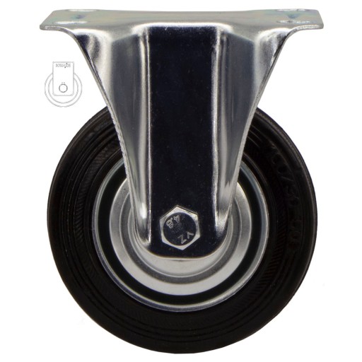 Koło posiada piastę metalową oraz oponę gumową, obudowa pokryta jest ocynkiem.