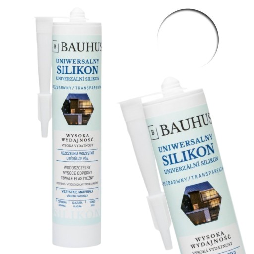 Silikon Uniwersalny Bezbarwny Bauhus to jednoskładnikowy, elastyczny uszczelniacz utwardzający się pod wpływem wilgoci z powietrza, przeznaczony do uszczelniania i spoinowania złączy oraz do zabezpieczenia przed wilgocią.