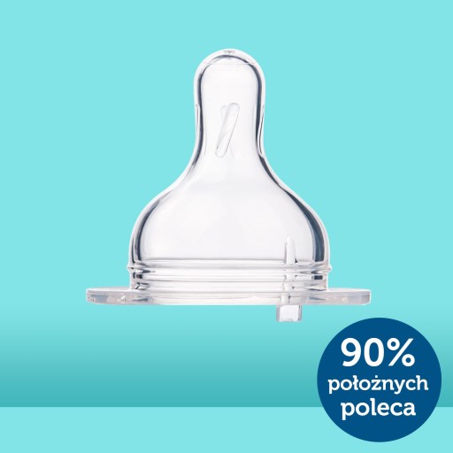 Ułatwia akceptację butelki przez dziecko.
