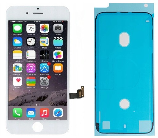Kompletny wyświetlacz LCD z ekranem dotykowym, ramką, oraz maskownicą głośnika i mocowaniami: na kamerkę i czujnik zbliżeniowy.